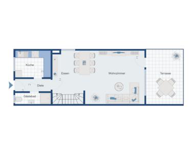 - Großzügiges Wohn- und Esszimmer mit Zugang zur Terrasse und in den Garten