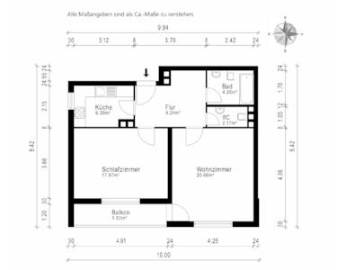 Diese top geschnittene 2-Zimmer-Etagenwohnung im 2. Obergeschoss eines Wohnhauses aus dem Jahr 1961 überzeugt mit ca. 61,73 m² Wohnfläche, einem klar strukturierten Grundriss und viel Tageslicht.