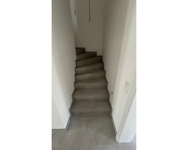 •Moderne Großformat-Fliesen im gesamten Erdgeschoss sowie auf der Betontreppe
