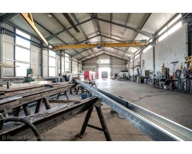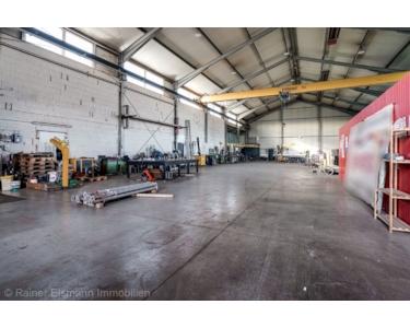 moderne isolierte Halle (7 m bis Traufe) bzw. Produktionsbereich und Lager mit Kranbahn (Tragkraft von 5 t), Rolltor von ca. 4,25 m Höhe und 5 m Breite.