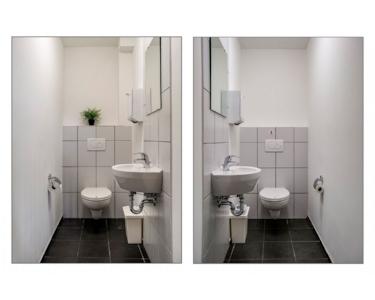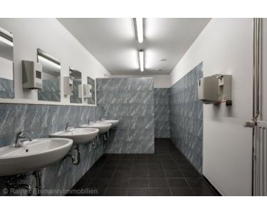 In der Halle befindet sich ein Technikraum und eine Toilette für die Mitarbeiter.