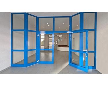 Die Flächen können an individuelle Anforderungen angepasst werden. Zusätzlich kann das äußere Erscheinungsbild durch eine moderne Lackierung der Fensterrahmen in edlem Anthrazit aufgewertet werden. So entsteht ein zeitgemäßer und hochwertiger Gesamteindruck, der die Außenwirkung Ihres Unternehmens perfekt unterstreicht.