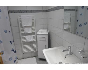 Ein modernes und helles Bad mit Dusche vervollständigt diese Wohnung.