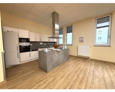 Ein besonderes Highlight ist die große, offene Einbauküche mit moderner Kücheninsel, die sich in einem der beiden Hauptbereiche befindet. Eine weitere, separate Küche ist von der zweiten Nutzfläche aus zugänglich und bietet zusätzlichen Komfort für den täglichen Betrieb.