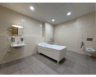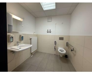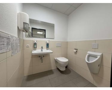 Dank der Vielzahl an Sanitäranlagen und der flexiblen Raumgestaltung eignet sich die Fläche hervorragend für Einrichtungen aus dem Pflege-, Sozial- oder Gesundheitsbereich – ebenso aber auch für Büronutzung, Schulungszwecke oder andere gewerbliche Konzepte mit erhöhtem Platz- und Hygienebedarf.