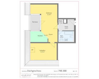 Diese gemütliche Dachgeschosswohnung mit ca. 60 m² Wohnfläche überzeugt durch ihre durchdachte Raumaufteilung und ein helles, offenes Wohnambiente. Der großzügige Wohn-, Ess- und Kochbereich bildet das Herzstück der Wohnung und wird durch große Fensterflächen lichtdurchflutet. Von hier aus gelangen Sie direkt auf den sonnenverwöhnten Balkon in Südausrichtung ideal zum Entspannen und Genießen. Eine ausfahrbare Markise sorgt dabei für angenehmen Schatten an warmen Tagen.