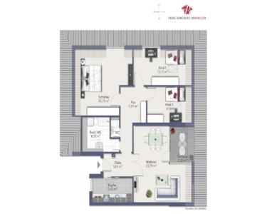 Die gelungene Grundrissgestaltung bietet echte Voraussetzungen für Ihr Wohngefühl. Über einen Laubengang erreichen Sie die gemütliche Dachwohnung. Der wohnfreundliche Grundriss bietet eine Diele, eine Küche, ein Wohnzimmer, ein Tageslichtbad, eine Gäste-Toilette, ein Schlafzimmer sowie zwei Kinderzimmer.