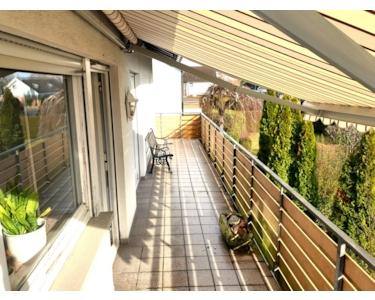 # 1 sehr großer Süd-Seiten Balkon im OG mit Markise, 1 Süd-Seiten Balkon im DG sowie 1 Süd-Seiten Terrasse im EG
