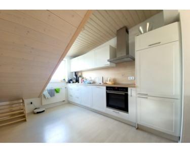 Dachgeschoss: 3 Zimmer, ca. 77,64 m² mit kleiner Dachterrasse, 2 Schlafzimmern, 1 Wohnzimmer, 1 Küche, 1 Tageslicht-Badezimmer mit Badewanne und Dusche sowie WC, 1 Kellerraum sowie 1 Pkw Stellplatz.