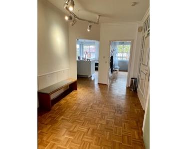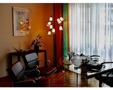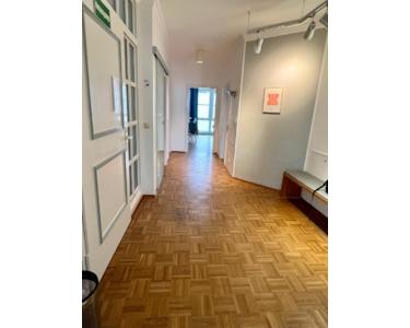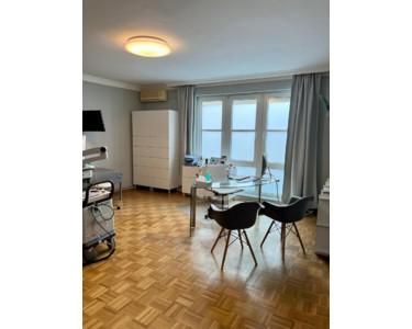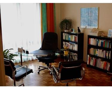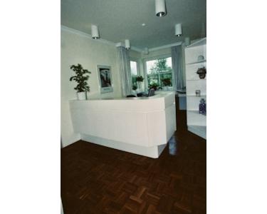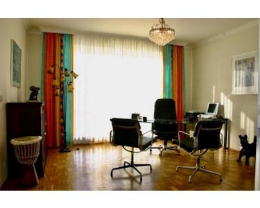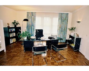 Die Räume sind lichtdurchflutet, haben eine Deckenhöhe von 2,7 m, Fußbodenheizung, und einen versiegelten Parkettboden. Zur Praxis gehören ein Archivraum im Keller und drei Stellplätze.