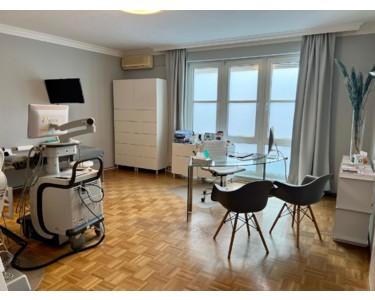 Die Praxisräume bieten auf 123 m2 ein großzügiges Entree, eine Anmeldung, zwei Behandlungszimmer (30+20m2), ein Wartezimmer (20m2) sowie ein Labor, ein Tageslicht-WC und einen weiteren kleinen Behandlungsraum.