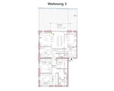 Das Angebot bezieht sich auf die Wohnung 3 im 1. Obergeschoß. Sie gelangen über eine geräumige Diele mit Garderobe in die Wohnung. Von der Diele gelangen Sie in das Gäste-WC sowie in den das Büro von ca. 8 m². Ebenso gelangen Sie in hellen geräumigen Wohn/Eßbereich mit offener Küche von ca. 30 m² sowie auf den sonnigen Balkon von 11 m². Über den Wohnbereich gelangen Sie in den separaten Schlaftrakt. Dieser besteht aus dem geräumigen Bad mit Fenster von ca. 9 m² ausgestattet mit Dusche und Wanne, dem gut aufgeteilten Elternschlafzimmer von ca. 13 m², dem funktionellen Hauswirtschaftsraum von . 6 m² sowie dem hellen Kinderzimmer/Büro von ca. 10 m². Die Wohnung hat eine Wohnfläche von ca. 105 m². Der Wohnung ist ein Kellerraum zugeordnet.