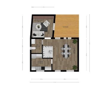 Im Erdgeschoss befindet sich ein einladendes Wohnzimmer, das fließend in die offene Küche mit Essbereich übergeht. Ein Gäste-WC komplettiert diese Etage.