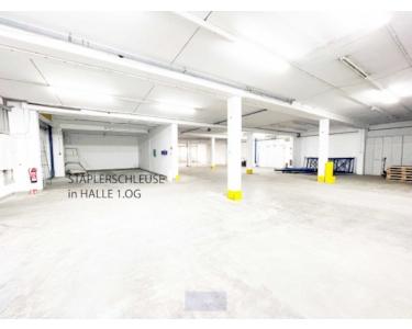 Die Lagerhalle EG ist über eine Rampe auch für schwere LKW 24/7 seitlich andienbar. (oder Stapler) Die Lagerhalle im darüberliegenden OG über Staplerschleuse.