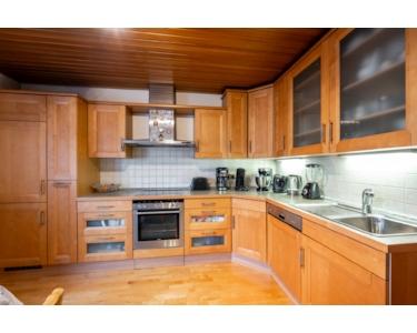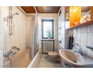 Im Obergeschoss befindet sich eine 1-Zimmer-Wohnung. Ihre halboffene Küche grenzt an den Wohn- und Schlafbereich an. Zusätzlich gibt es ein Badezimmer mit Wanne und einen kleinen Balkon, der vom Wohnraum aus zugänglich ist. Im Dachgeschoss liegt eine weitere Wohnung. Sie verfügt über ein großes Schlafzimmer, ein Wohnzimmer, eine großzügige Küche und ein Badezimmer mit Wanne und Dusche. Die vierte Wohnung erstreckt sich über den Anbau von 1986 und verteilt sich auf das Erd- und Obergeschoss. Die Wohnung wird über einen separaten Eingang an der rechten Hausseite betreten. Sie ist nur über den Keller mit dem Hauptgebäude verbunden. Im Erdgeschoss befinden sich zwei Schlaf- oder Arbeitszimmer, ein Badezimmer und ein Gäste-WC. Eine Treppe innerhalb der Wohnung führt ins Obergeschoss, wo eine Küche und ein Wohnzimmer mit Zugang zum großen Süd-Balkon liegen. Ebenfalls auf dieser Etage befindet sich ein weiteres Schlaf- oder Arbeitszimmer. Der Keller dient als Nutz- und Lagerfläche mit fünf Kellerräumen sowie einem Heizungsraum. Abgerundet wird das Angebot durch zwei überdachte Stellplätze und zwei Einzelgaragen.