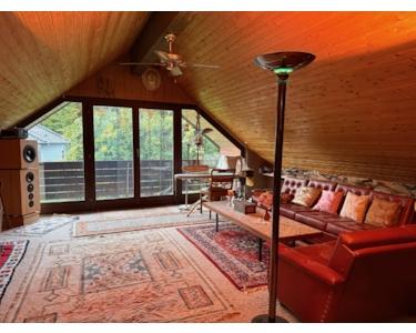 Von der Wohndiele gelangt man über eine offene Wendeltreppe in das ausgebaute Obergeschoss / Dachgeschoss.