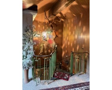von der Wohndiele im Erdgeschoss gelangt man über die Wendeltreppe in das Untergeschoss.