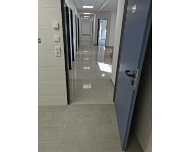 Die Praxis hat neun Behandlungsräume, einen OP - Raum, 2 Warteräume, einen Aufenthaltsraum, einen Versorgungsraum, ein Behinderten - WC, ein Personal-WC, und zwei Publikums - WC 's. Das Wartezimmer liegt mit Blick auf einen Innenhof.