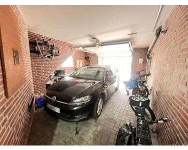 Für Fahrzeuge stehen sowohl eine Doppelgarage als auch eine Einzelgarage zur Verfügung, die ausreichend Platz für Autos, Fahrräder oder eine kleine Werkstatt bieten. Zwei separate Zufahrten sorgen für eine bequeme Erreichbarkeit und erleichtern den Alltag. Beide Garagen sind über elektrische Sektionaltore schnell zugänglich. Von der Einzelgarage aus führt ein zweiter Treppenaufgang direkt in die Dachgeschosswohnung.