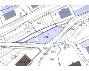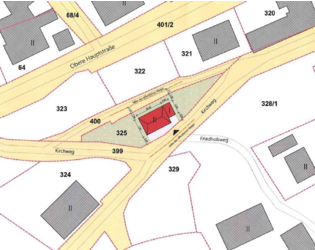 Das Kaufangebot besteht aus dem Flurstück 325 (ca. 500 m²) sowie der Teilfläche des Flurstückes 400 (ca. 214 m²).