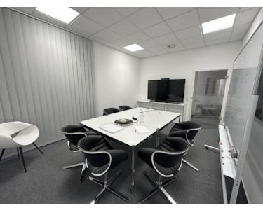 Großzügige Gemeinschaftsflächen, moderne Lounges und ein repräsentativer Meetingraum mit Big-Screen und professioneller Video-Conferencing-Technik stehen allen Mietern zur Verfügung – ideal für Teammeetings, Kundenpräsentationen oder hybride Arbeitsformen.