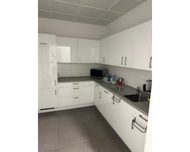 Die voll ausgestattete Küche mit Kaffeemaschine, Mikrowelle und weiteren Annehmlichkeiten rundet das Angebot ab und schafft eine angenehme Arbeitsatmosphäre, die zum Austausch und Verweilen einlädt.