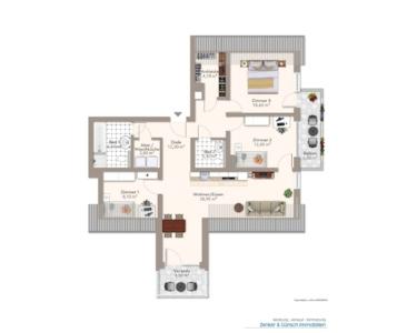 In Lappersdorf, am Pflälzer Weg 16 entsteht ein Mehrparteienhaus in massiver Ziegelbauweise mit insgesamt 10 Wohneinheiten, 10 Tiefgaragen PKW - Einzelstellplätzen sowie 6 Außenstellplätzen. Diese 4 - Zi Wohnung im Dachgeschoss mit Ostbalkon, verfügt neben der zeitgemäßen und attraktiven Ausstattung über eine Gesamtwohnfläche von 102,6m², aufgeteilt in Diele, Badezimmer, Abstellraum, 2 Schlafzimmer und 1 Wohn-Esszimmer mit offen gehaltener Küche und toll belichteter Veranda mit Südausrichtung.