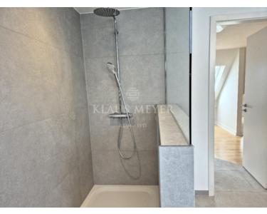 Die Fläche im 6.OG verfügt neben der großen Dachterrasse über ein Duschbad sowie eine neue Einbauküche.