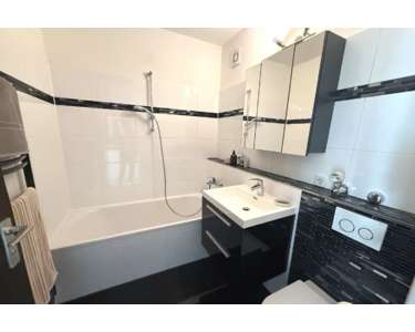 * Modernisiertes Badezimmer mit Badewanne und stilvollen Fliesen