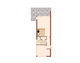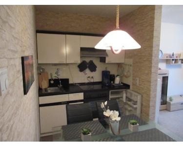 Die 2-Zimmer-Wohnung befindet sich im Erdgeschoss des Hauses und hat einen ebenerdigen Zugang. Die Wohnung ist frisch renoviert und mit Teppichboden ausgestattet; Bad und Küchenzeile sind gefliest. Vom Wohn-/Esszimmer aus ist die Terrasse zugänglich.