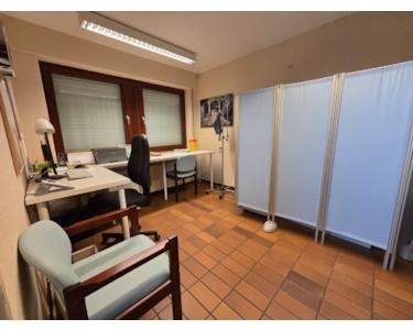 Bei diesem Objekt handelt es sich um eine gemischt genutzte Immobilie mit einer von dem Vermieter selbstgenutzten Wohnung im Obergeschoß. Hier angebotene Praxis befindet sich im Erdgeschoß. Zu den Praxisräumen führt ein separater, barrierefreier Eingang. Dieses Angebot umfasst die Praxisflächen im Erdgeschoß des Gebäudes außerdem noch zwei Lagerräume im Keller.