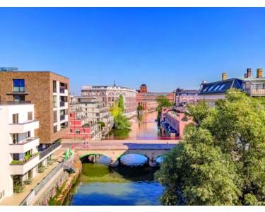 Schleußig, zwischen Weißer Elster und Elsterflutbett gelegen, ist ursprüngliche eine Insel und nur über eine von elf Brücken erreichbar. Auf einstmals feuchtem Grund hat sich nach Plänen des Industriepionieres Karl Heine ein prächtiger und lebendiger Stadtteil entwickelt, der viele junge und kreative Menschen und Familien anspricht.
