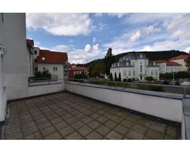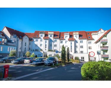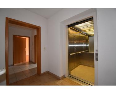 Moderne, ruhige Wohnanlage, 1. Obergeschoss, Fahrstuhl, Flur, Bad mit Wanne, WC, Handwaschbecken und Fenster, Küche mit Fenster, Wohnzimmer mit Zugang zum Balkon, Schlafzimmer mit Zugang zur Dachterrasse