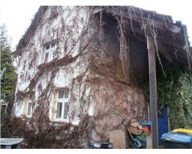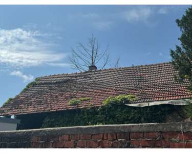 Das auf dem Grundstück befindliche Wohnhaus steht seit 2019 leer. Das Gebäude verfügt über eine Wohnfläche von ca. 86m². Es besteht ein allumfänglicher Sanierungs- und Modernisierungsbedarf, da das Gebäude in seiner aktuellen Struktur erhebliche Mängel aufweist. Die Fassade weist teilweise Abplatzungen und Verwitterung auf. Das Dach des Gebäudes wurde durch den Abriss der ehemals angebauten Nachbarscheune beschädigt und im Zuge dessen gestützt und notdürftig repariert. Um die Sicherheit des Hauses zu gewährleisten, müssen hier erhebliche Maßnahmen zur Reparatur und Stabilisierung durchgeführt werden.