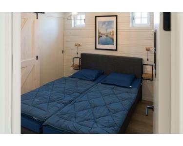 Dieses brandneue Wasserfront-Ferienhaus aus 2022 im Ferienpark De Groote Vliet kombiniert luxuriöse Architektur mit dem einzigartigen Charme von West-Friesland. Das ebenerdige Haus von 75m² bietet 2 Schlafzimmer, 1 Badezimmer, 1 separate Toilette und ein Grundstück von 198m² mit eigenem Steg direkt am Wasser, perfekt für Familien oder als Investition. Die spektakuläre Lage am Wasser mit eigenem Steg sorgt für ein einzigartiges Urlaubsgefühl und direkten Zugang zu Segeln und Wassersport. Die moderne Architektur zeigt sich in der dunkelgrauen Fassadenverkleidung mit weißen Akzenten, Holzbalken und großen Terrassentüren, die für viel natürliches Licht sorgen. Der luxuriöse offene Wohnbereich mit Holzbalken, auffälliger blauer Akzentwand und moderner Küche mit Kochinsel schafft ein räumliches, stimmungsvolles Wohnerlebnis. Die vollständig ausgestattete Küche mit schwarzen Metrofliesen und Einbaugeräten bietet allen Komfort für Selbstversorgung. Die zwei Schlafzimmer, eines mit Etagenbetten für vier Personen und ein Hauptschlafzimmer mit Boxspringbett, bieten optimale Ruhe und Flexibilität. Das luxuriöse Badezimmer mit schwarz-weißen Metrofliesen, portugiesischen Bodenfliesen und begehbarer Dusche erhöht den Komfort erheblich. Das Energielabel A mit Wärmepumpe garantiert nachhaltiges und kostensparendes Wohnen.