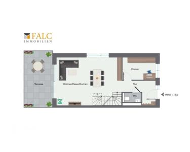 - Offenes Wohnen: Großzügiger Wohn-/Essbereich mit offener Küche und direktem Zugang zur sonnigen Terrasse