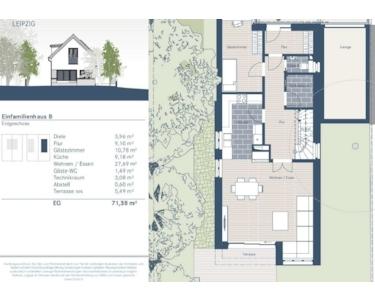 Individuelles Einfamilienhaus mit KfW55-Standard mit Garage in Leipzig Stahmeln.