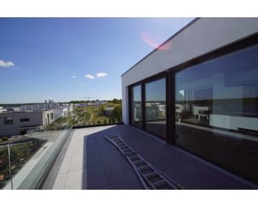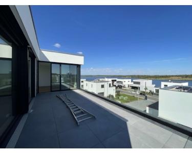 - riesige Dachterrasse (ca. 35m²) mit Glasgeländer + Blick auf den See