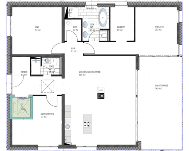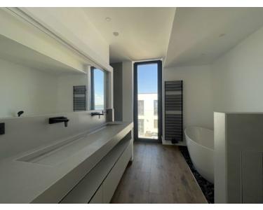 Neben dem großen, offenen Wohn- und Essbereich gibt es 3 weitere Zimmer, sowie eine Ankleide und eine große Dachterrasse. Der Außenbereich mit großem, beheizbaren Pool und einer Terrasse mit Südausrichtung rundet das Angebot ab.