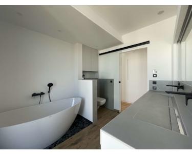 - 2 Bäder mit insgesamt zwei Duschen (einmal mit Infrarotheizmodul) + einer freistehenden Badewanne