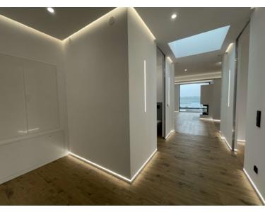 - LED-Strahler und Lichtband dimmbar über Smart Home Displays und Smartphone einstellbar