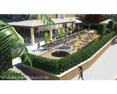 Für Abkühlung an heißen Tagen sorgen nicht nur die zwei Outdoorpools, sondern auch die Wasserrutschen, die für jede Menge Spaß und Action sorgen. Im Restaurant können Sie sich kulinarisch verwöhnen lassen und in den Läden finden Sie alles, was Sie für den täglichen Bedarf benötigen. Für Sportbegeisterte gibt es ein Fitnessstudio und auch ein Spa-Bereich lädt zum Entspannen ein.