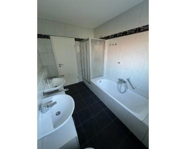 - Badezimmer mit Badewanne, Dusche, WC und Doppelwaschbecken