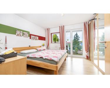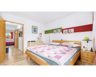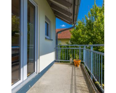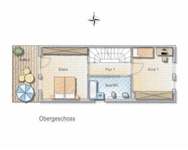 Im Obergeschoss befinden sich zwei gut geschnittene Schlafzimmer mit jeweils etwa 12 bis 14 Quadratmetern. Eines der Zimmer verfügt über einen Zugang zum Westbalkon, der abends zum Sonnenuntergang einlädt.