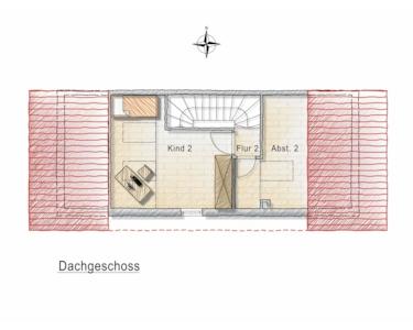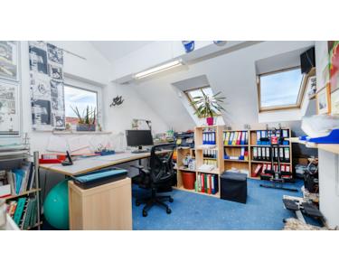 Im Dachgeschoss liegt ein weiteres Zimmer mit rund 12 Quadratmetern, das sich ideal als Kinder-, Gäste- oder Arbeitszimmer nutzen lässt.