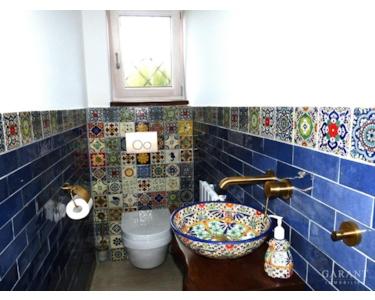 * Handbemalte mexikanische Fliesen im Tageslicht-WC