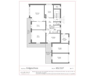 Der Raumzuschnitt der Erdgeschosswohnung wurde entsprechend der Baupläne beibehalten, aber auch diese Wohnung ist umfassend renoviert worden. Über zwei Terrassenzugänge wird hier der herrlich große und sonnige Garten mit Obstbäumen und duftenden Rosenbeeten erschlossen.