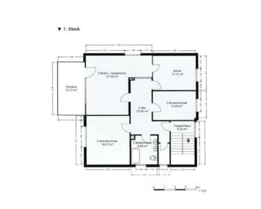 O B E R G E S C H O S S : - 3 Zimmerwohnung mit ca. 98 m² mit Terrasse und Garten