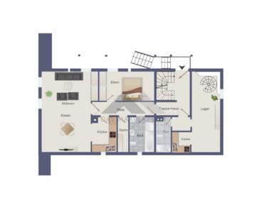 - - Stauraum und WC über eigene Wendeltreppe