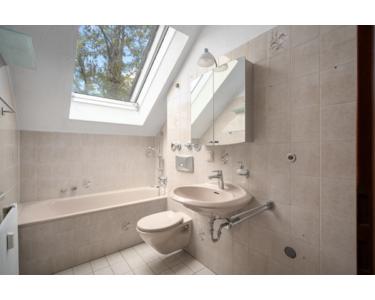 - Helles Badezimmer mit Badewanne mit Dachfenster